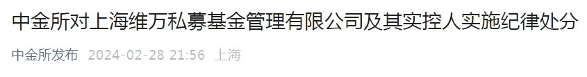 近日,中国金融期货交易所(以下简称“中金所”)对上海维万私募基金管理有限公司(以下简称“上海维万公司”)及其实控人,未按规定申报实际控制关系账户,违反交易所交易限额制度,在股指期货多个品种上超交易限额交易的违规行为实施纪律处分。