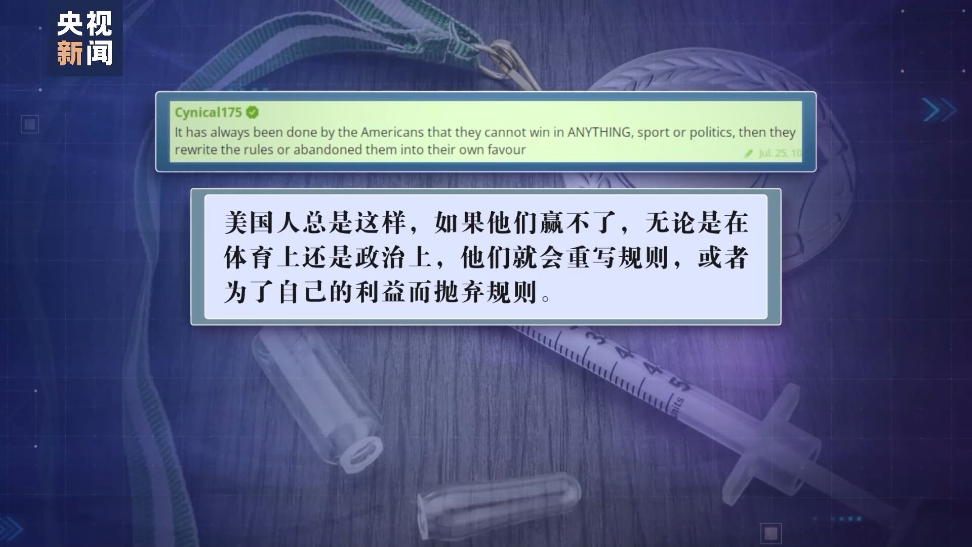 对于世界反兴奋剂机构披露美国掩盖、纵容兴奋剂违规一事,有网友评论道: